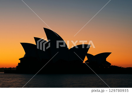 夕暮れに浮かぶシドニーオペラハウスのシルエット