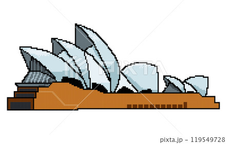 シドニーオーストラリアオペラハウスのピクセルアートのイラスト 世界遺産、観光名所 ベクターデータ