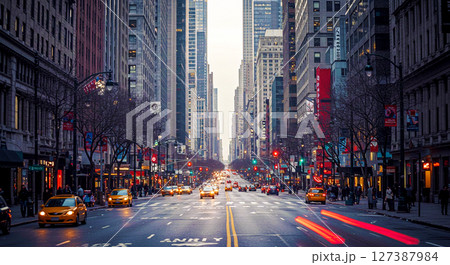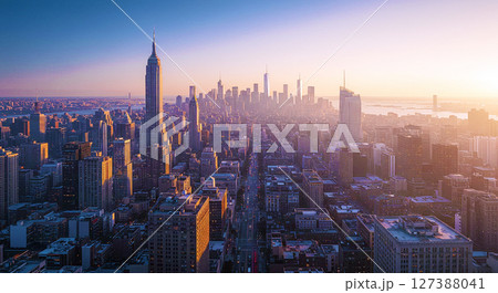 ニューヨークの夕焼け:摩天楼に沈む太陽と都会の輝き