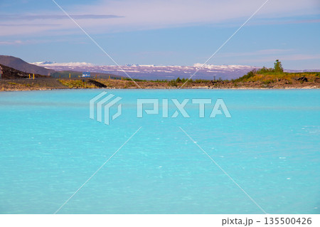 北欧の島国アイスランド共和国北部の街レイキャフリーズ郊外の幹線道路沿いに現れるブルーレイク