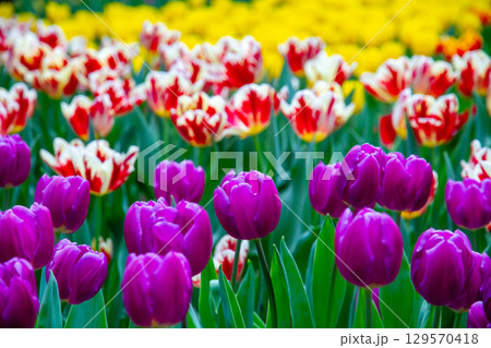 シンガポール共和国 中心部マリーナベイのガーデンバイザベイ フラワードームのチューリップ畑