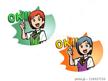 OKするリクルートスーツ風の若い男女ビジネスマンのイラスト