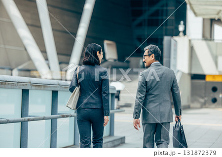 オフィス街を歩くシニアビジネスマン 男女