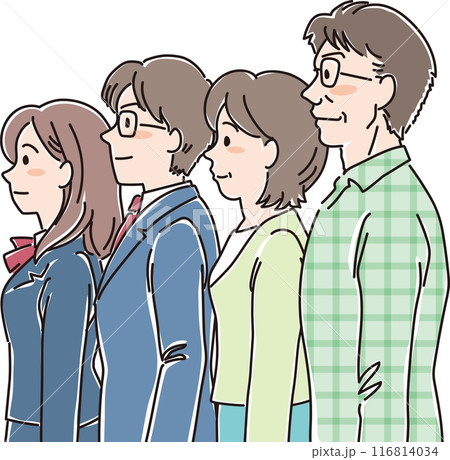 色々な年代の人物_横向き_普通の表情_4人家族_高校生男女_両親