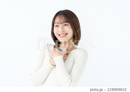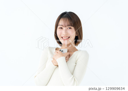 若い女性 カジュアル スマホ 抱える