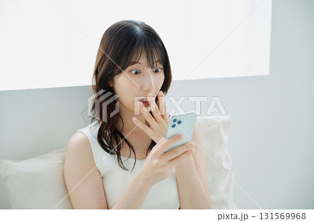 スマホを操作する若い女性