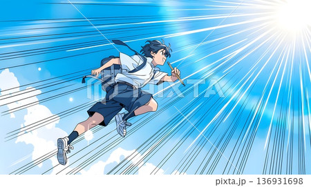 目標達成を目指す高校生 シンプルでお洒落な線画イラスト