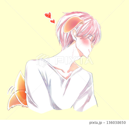 キス顔の男性 横顔 笑顔 赤面 犬っぽい
