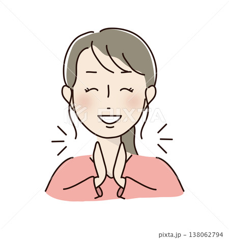 小さくガッツポーズしている女性の上半身手描きイラスト