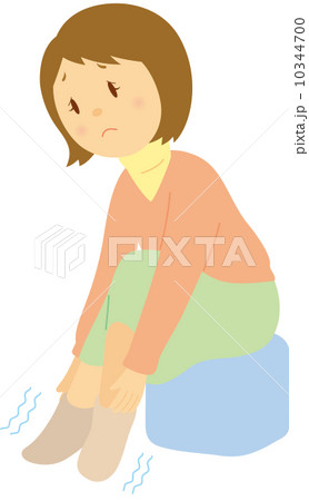 膝を抱えて座る女性
