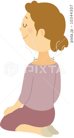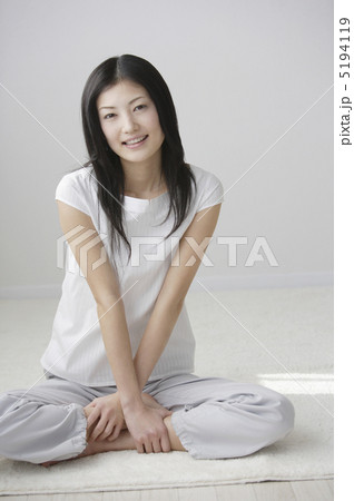 胡座で座る笑顔の女性