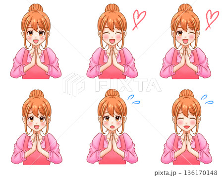 手を合わせてお願いする可愛い主婦のイラスト素材セット2