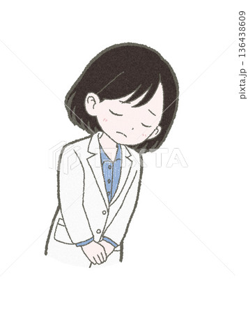 頭を下げる白衣姿の医療関係者の女性の手書きイラスト素材