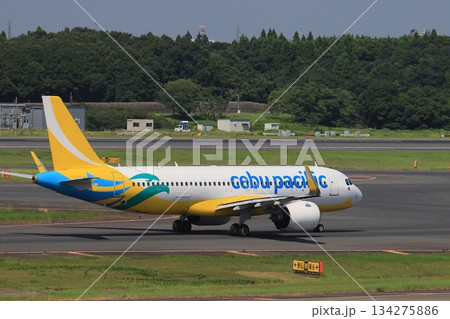セブパシフィック航空機 滑走路に向けてタキシングする航空機