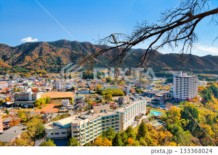 栃木県日光市 秋の紅葉に染まる鬼怒川温泉と鬼怒川