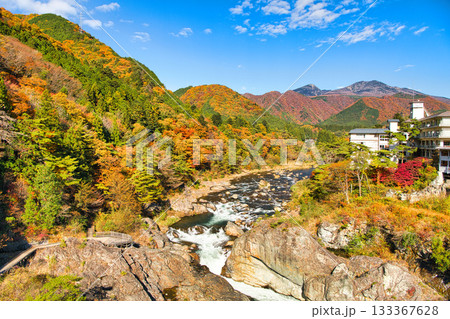 栃木県日光市 秋の紅葉に染まる龍王峡と鬼怒川