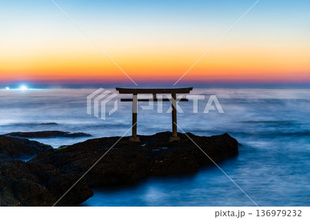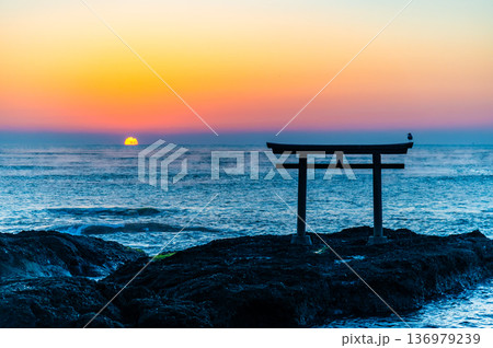 茨城 大洗磯前神社 神磯の鳥居の夜明け