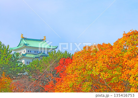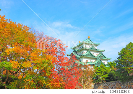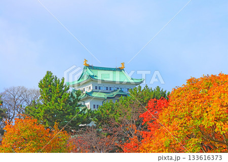 《愛知県》秋の紅葉が始まった名古屋城天守閣