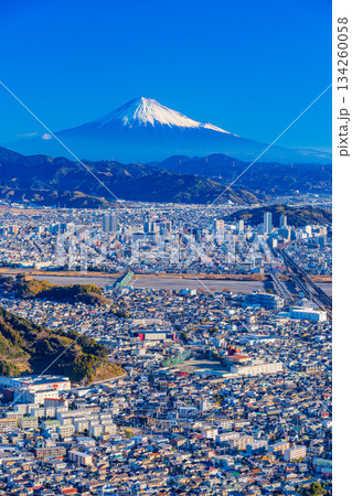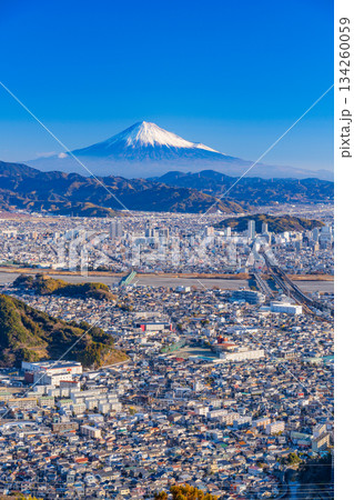 【静岡県】静岡の街並みの向こうに富士山 早朝