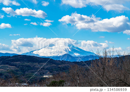 【富士山素材】晩秋の紅葉台から見る冠雪した富士山とうろこ雲【山梨県】
