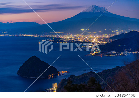 (静岡県)発端丈山から眺める沼津の街並みと富士山・夕景