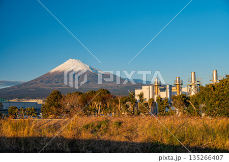 (静岡県)沼津の街並みと富士山 夕景