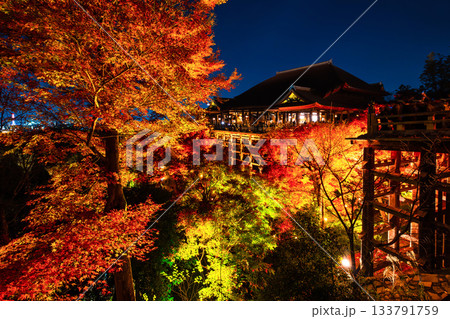 清水寺の舞台と紅葉のライトアップ