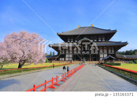 【奈良県】桜が満開の東大寺大仏殿(奈良公園)