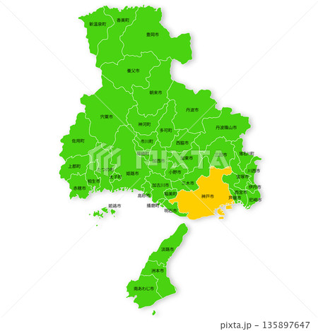 兵庫県の地図・Hyogo(市町村・区分け)