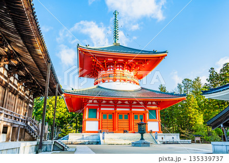 【和歌山県】快晴の高野山の壇上伽藍の東塔