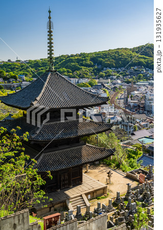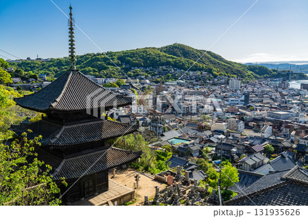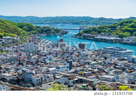 《広島県》尾道の街並み全景・丘の上の眺望