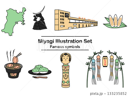シンプルでかわいい宮城県にまつわるイラストセット(2色)