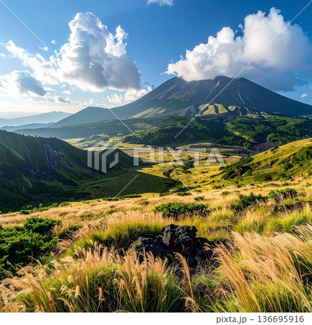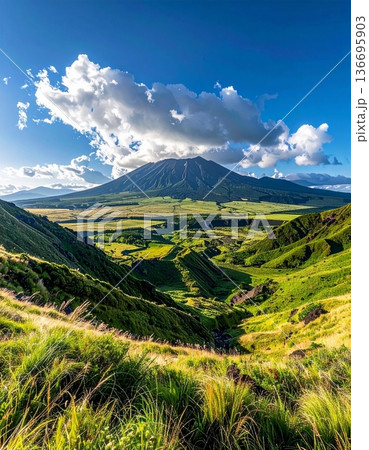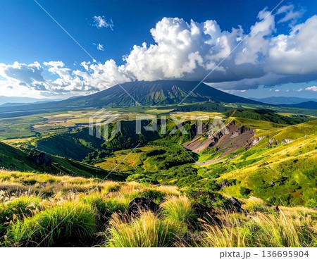 【AI生成画像】日本の自然美 カルデラが印象的な阿蘇山の絶景