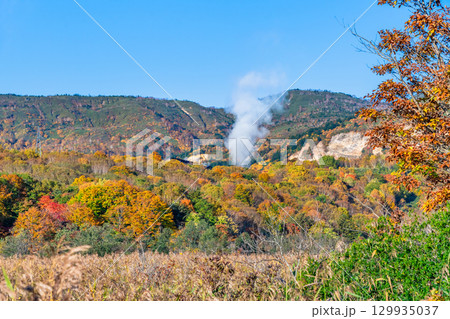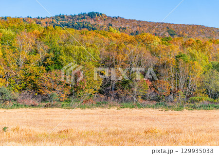 「岩手県」平庭高原の白樺美林と紅葉 秋