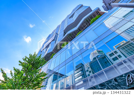 都市風景 見上げたビルと遠い空