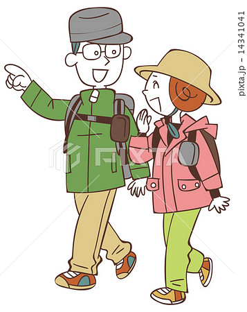 トレッキングのイラスト トレッキングするカップル トレッキング男女のイラスト 登山 登山イラスト