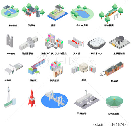 東京 名所・名産 アイコン素材セット(名称あり)