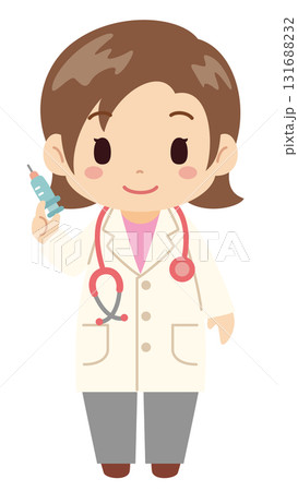 若い女性医師が注射器を持っているシンプルで可愛らしいベクターイラストアイコン