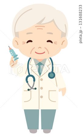 高齢ベテラン男性医師が注射器を持っているシンプルで可愛らしいベクターイラストアイコン