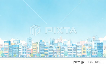 青空の下に広がる都会の街並みイラスト 背景