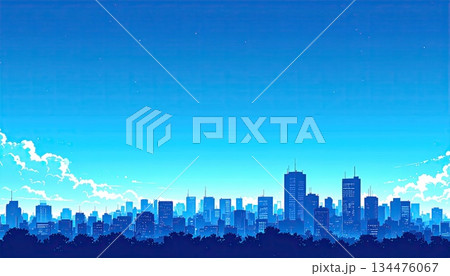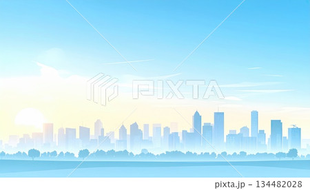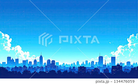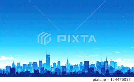 都市の町並みと青空(シンプルな色使い)