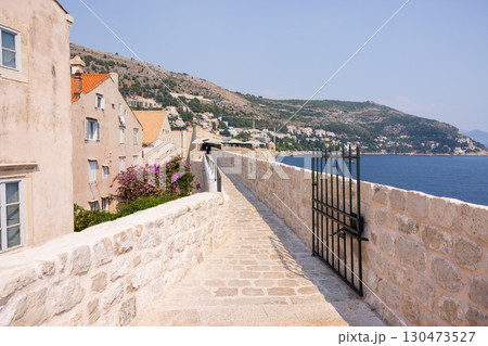ヨーロッパ、クロアチアのドゥブロヴニクの旧市街の城壁の風景