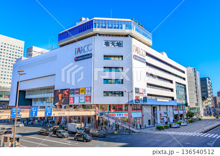 日本の横浜都市景観 師走。相鉄横浜駅前。パルナードSTなどを望む