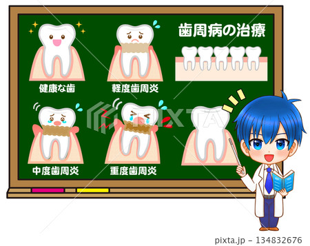 歯周病治療の説明をする歯科医のちびキャライラスト素材