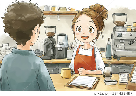 美優シリーズ:カフェで働く女性 注文を聞くバリスタの接客