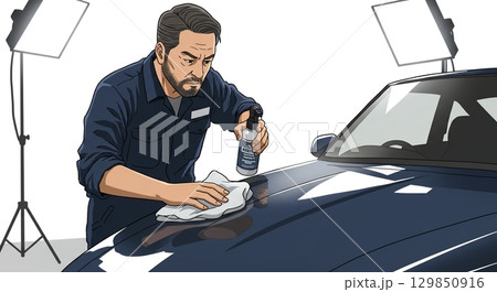 最高の技術!愛車を磨き上げるプロの男性作業員