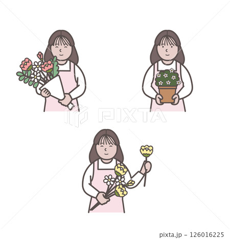 花屋の女性店員の上半身イラストセット