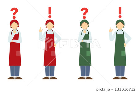 フラットイラスト:ひらめくスーパー店員と考えるスーパー店員