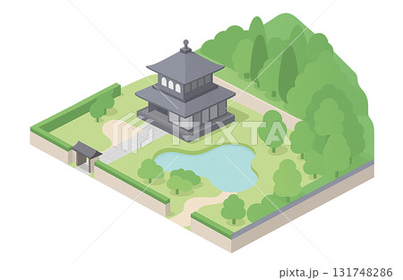 アイソメトリックイラスト:和風の門と日本家屋