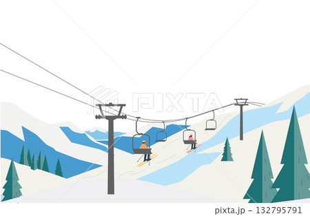 雪山のスキーリフトとゲレンデの風景イラスト